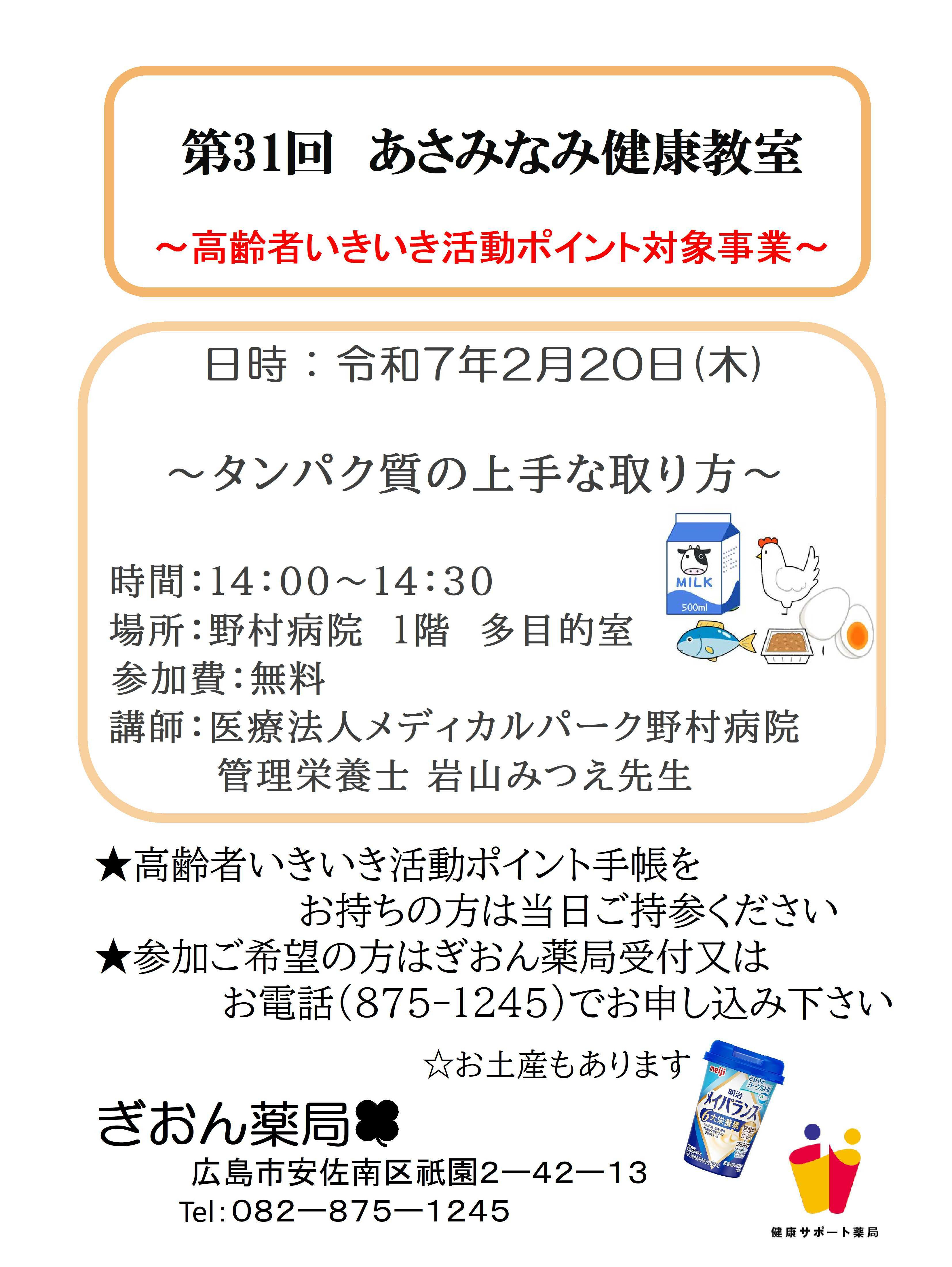 令和7年2月20(木) 14時~ あさみなみ健康教室を開催します。